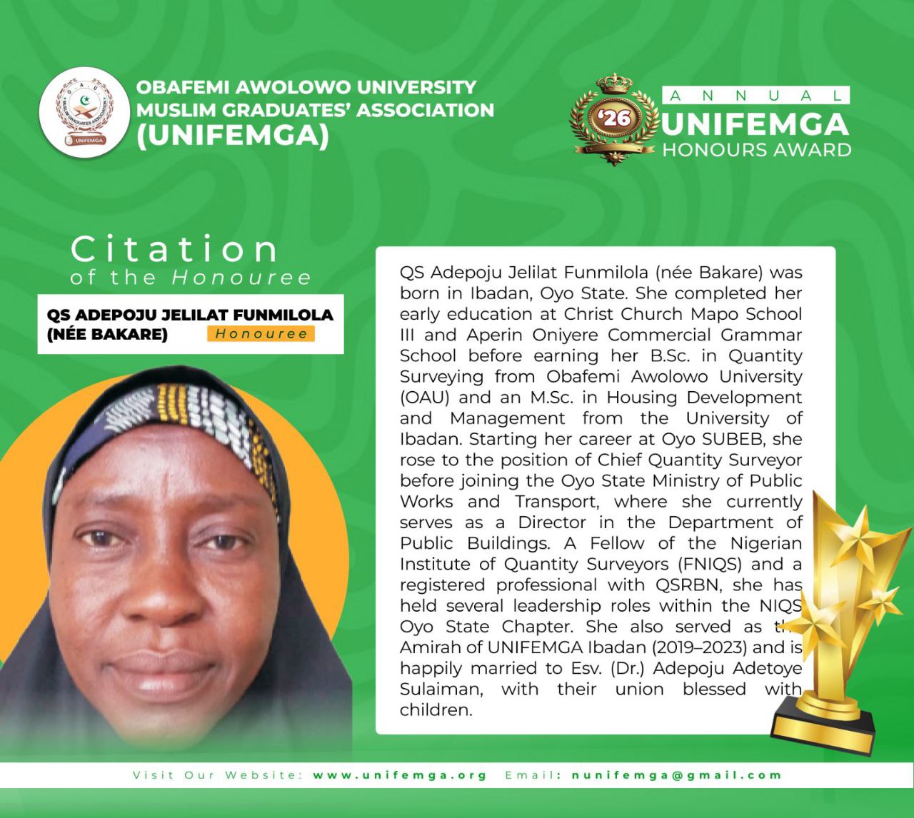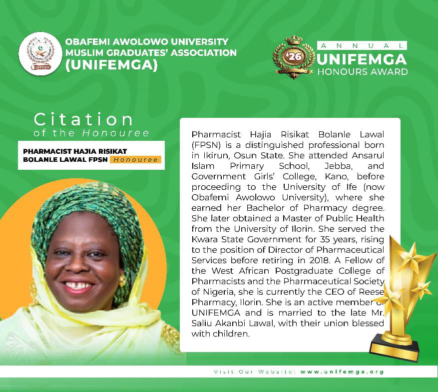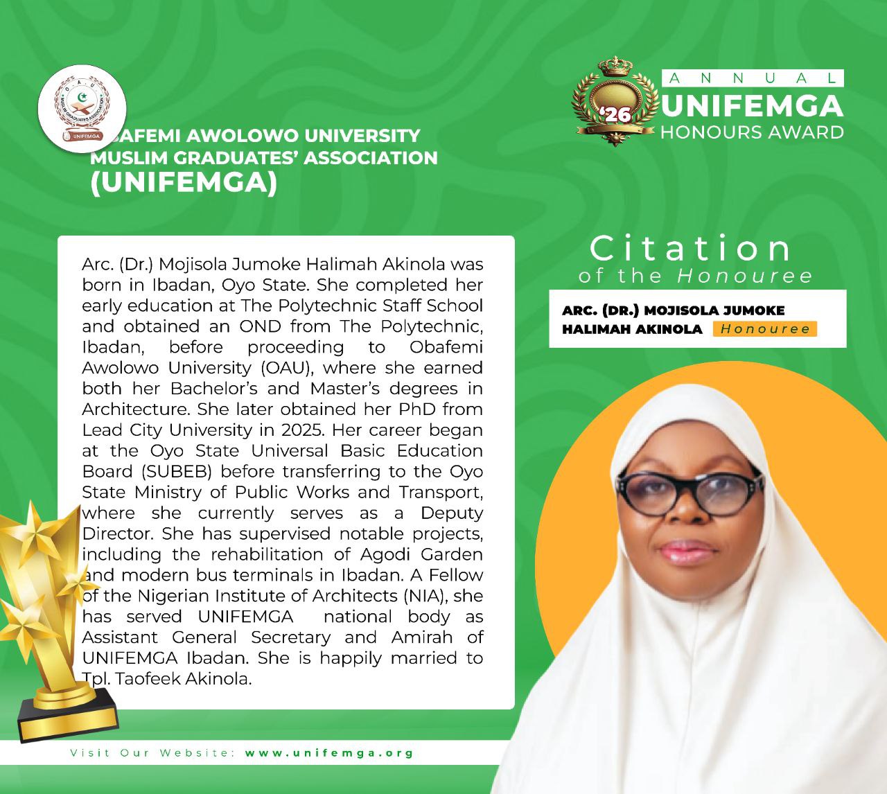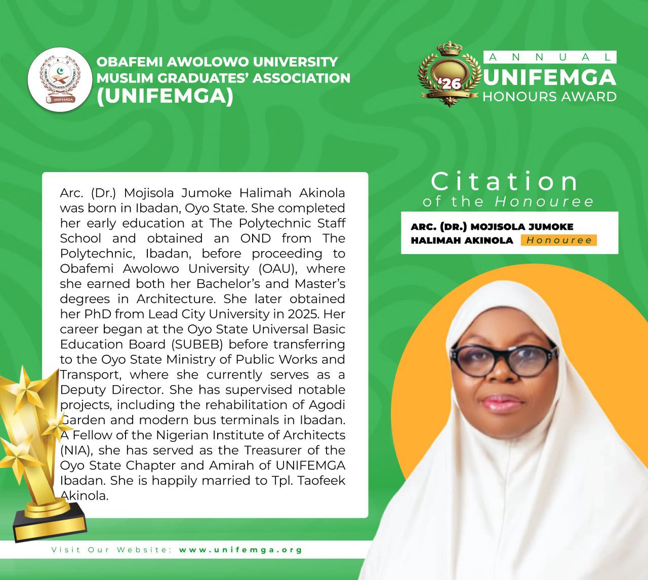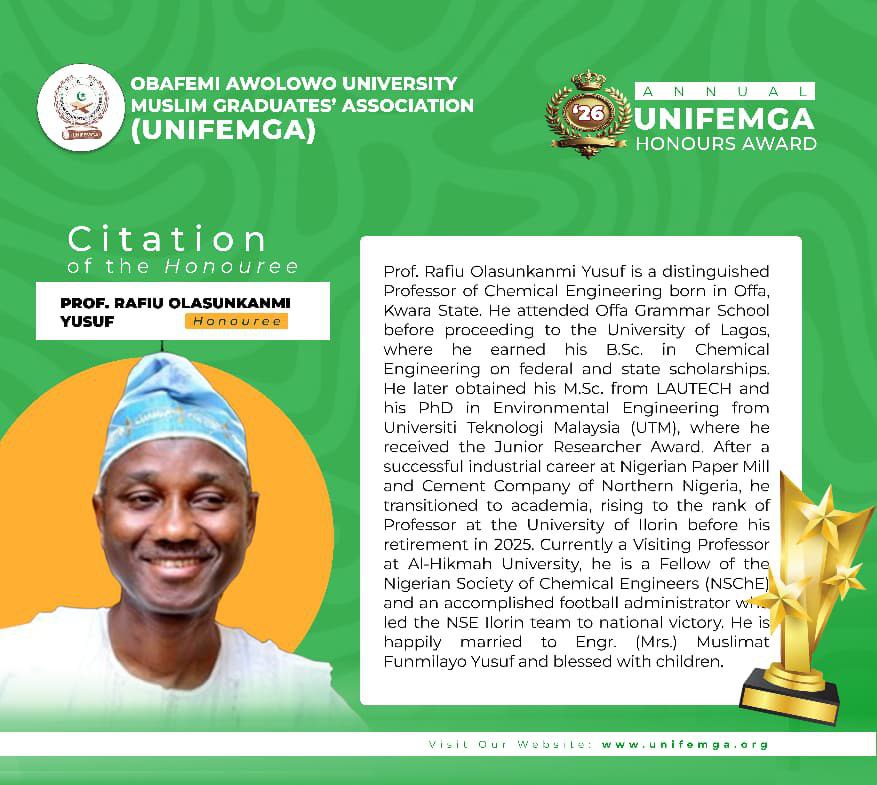UNIFEMGA – Obafemi Awolowo University Muslim graduate Association is an organisation that caters for the needs of OAU muslim graduates.