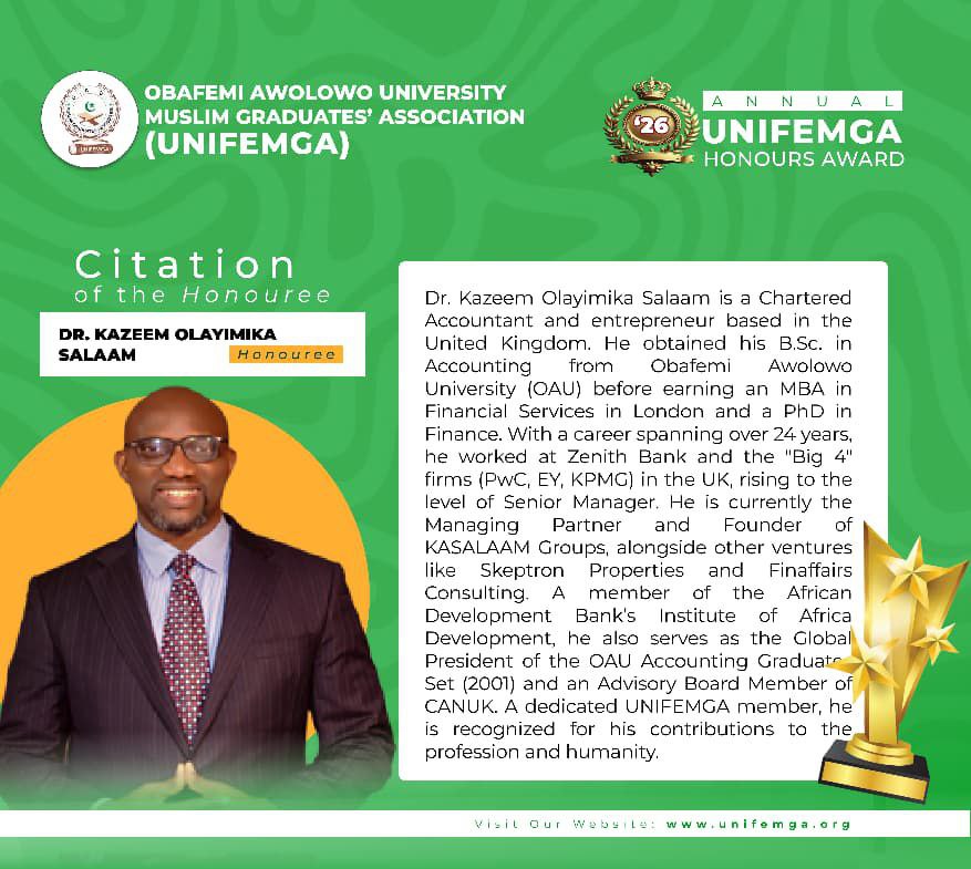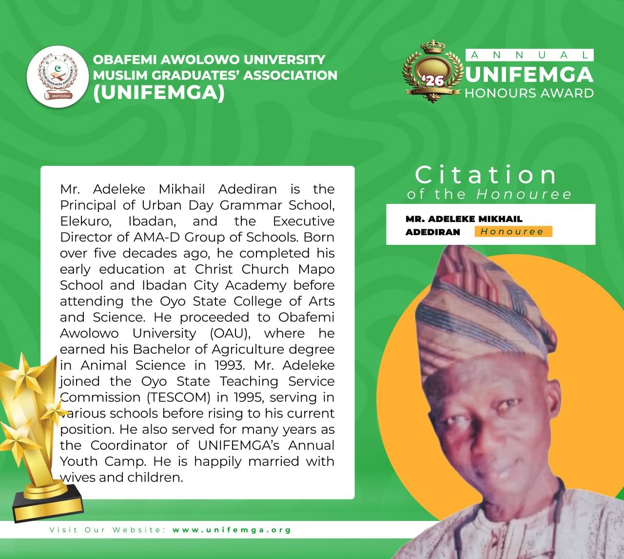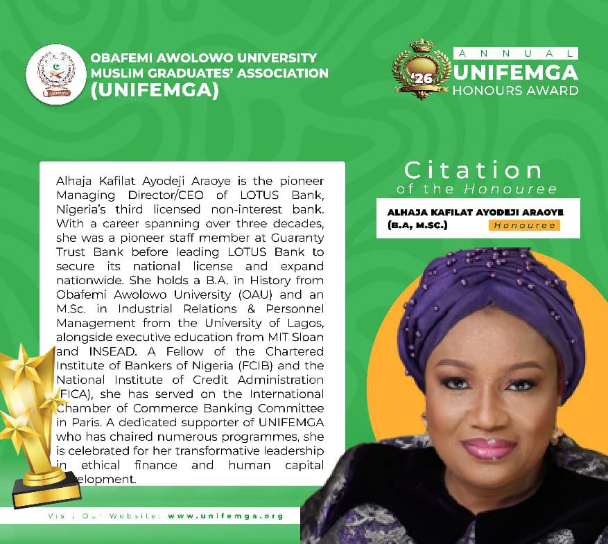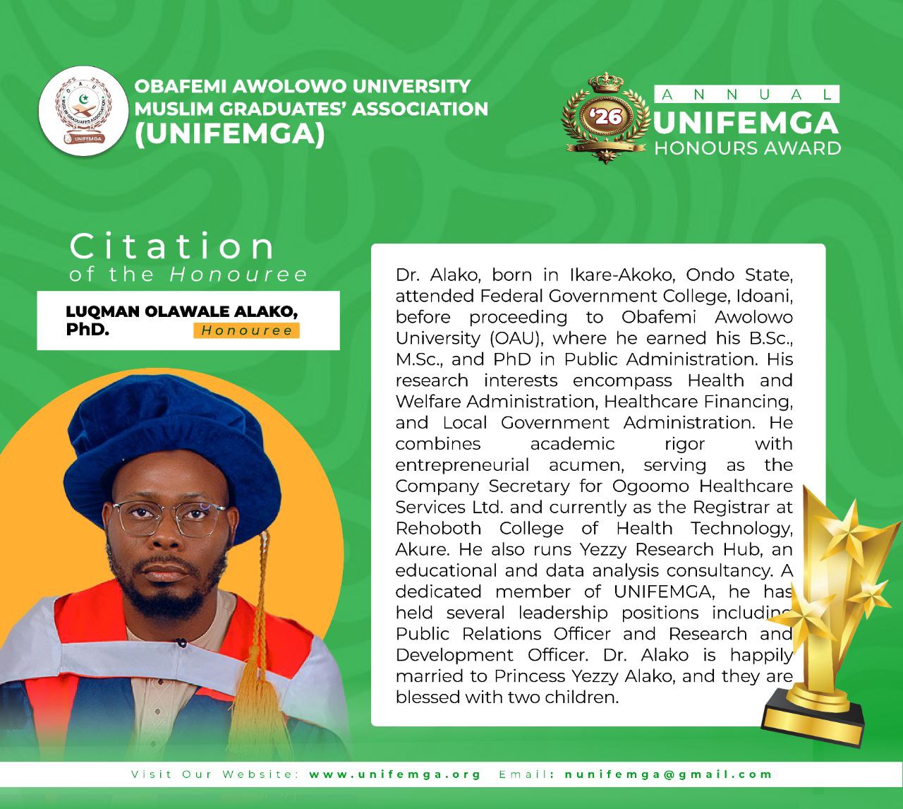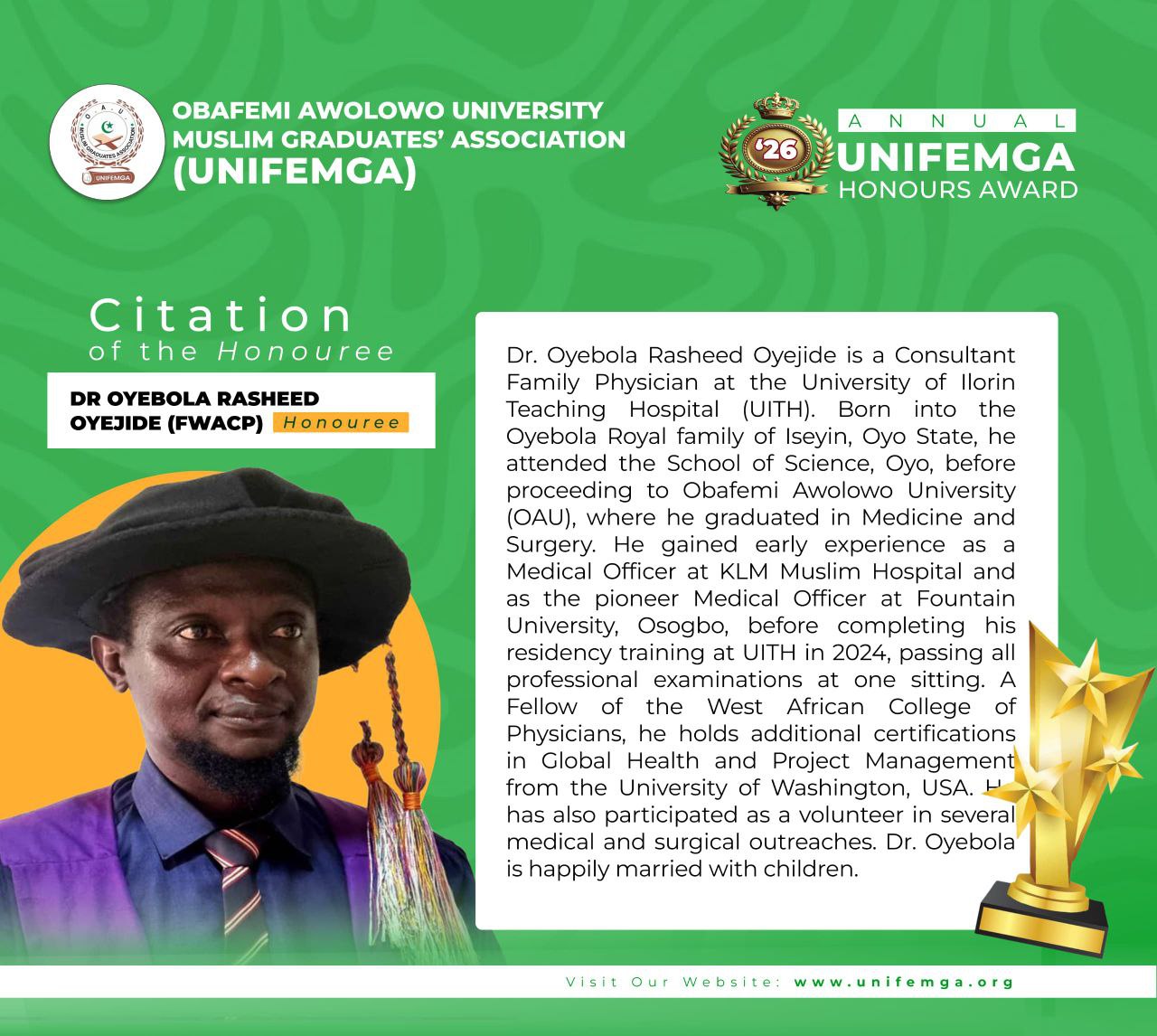 UNIFEMGA – Obafemi Awolowo University Muslim graduate Association is an organisation that caters for the needs of OAU muslim graduates.